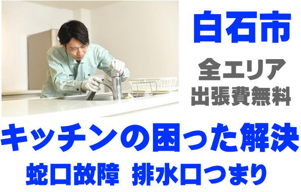 白石市で台所のトラブルはお任せください。蛇口の水漏れ、排水つまり、ディスポーザー詰まりなど緊急対応いたします。